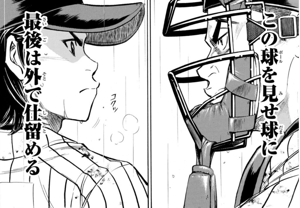 この場面でプライドの高い向井が、自分の決め球ではなく乾のリードを信じて投げた、投手のエゴではなくチームを優先したのは、1年生の頃からバッテリーを組んできた乾への信頼があったから。自分の投球を生かすため、自分の投球に応えるためと努力し結果を残してきた乾を信じる気持ちが、向井に決め球のスクリューではなくインハイにライジングを投げさせたのではないでしょうか。